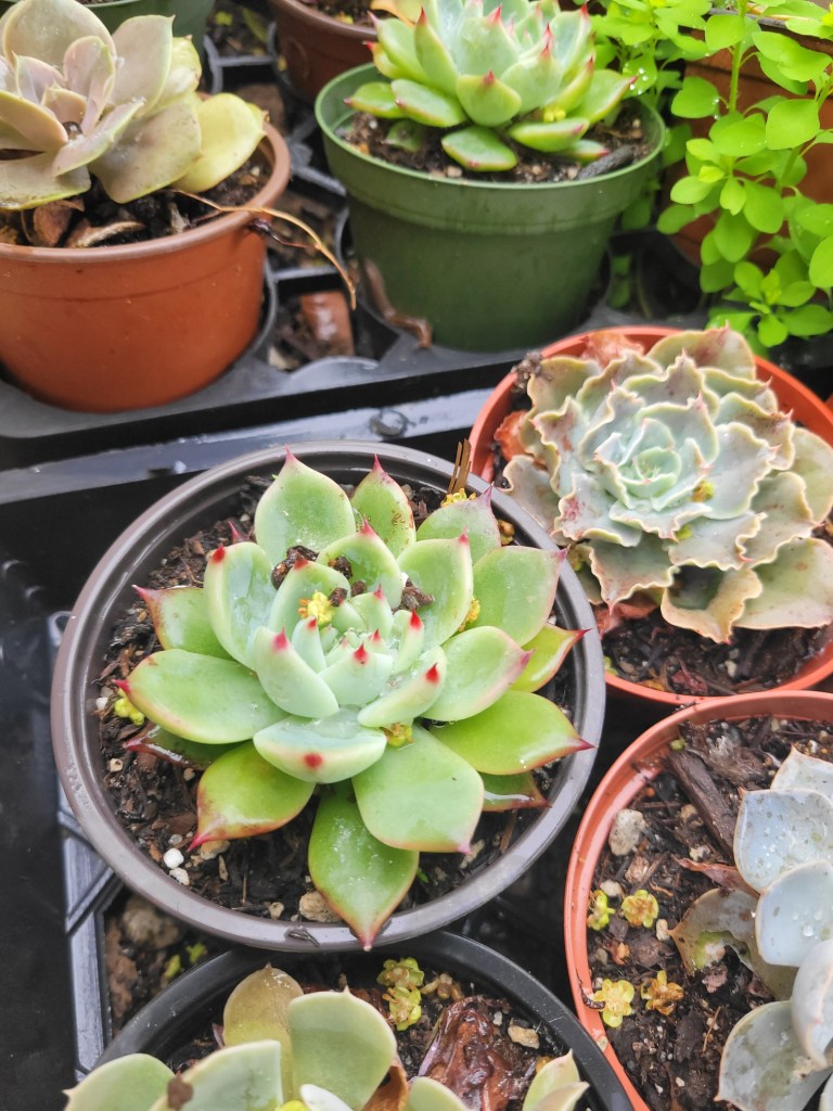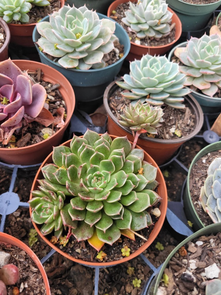 - Succulents- agave, echeveria, fire stick, jade, blue fingers, elephant food, green, blue aeonium, starburst aeonium, cactus, aloe, plumeria and so much more….